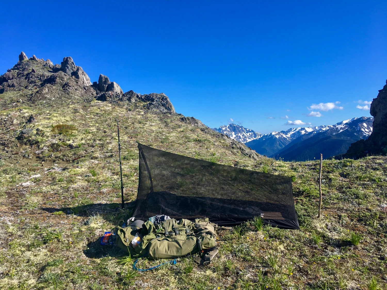 on a summer backpacking trip is a joy – except for the bugs. Our new Mesh Tent 1 offers breezy, versatile, very lightweight protection against mosquitoes, no-see-ums, and other bugs for those who prefer the minimalist approach. The Mesh Tent 1 is a classic ridge-tent design, so all you need to pitch it are ridge line supports and a little imagination: Tie the supports to trees, or use trekking poles. Paddles will work, as will fallen tree branches.