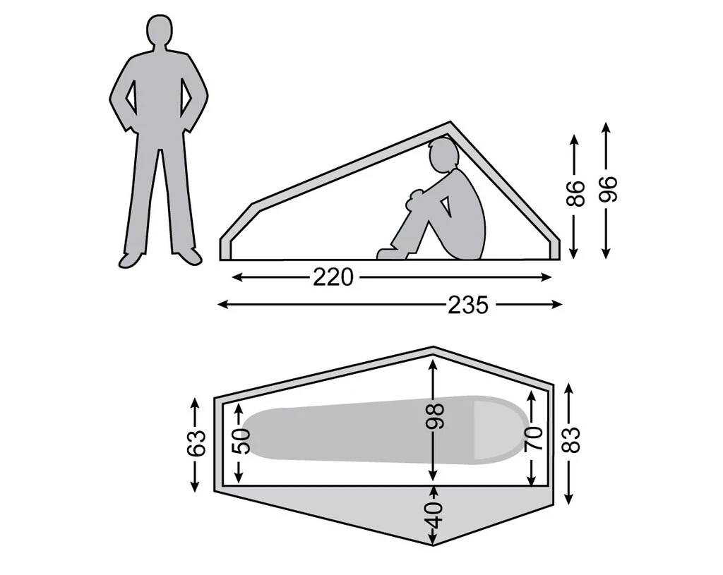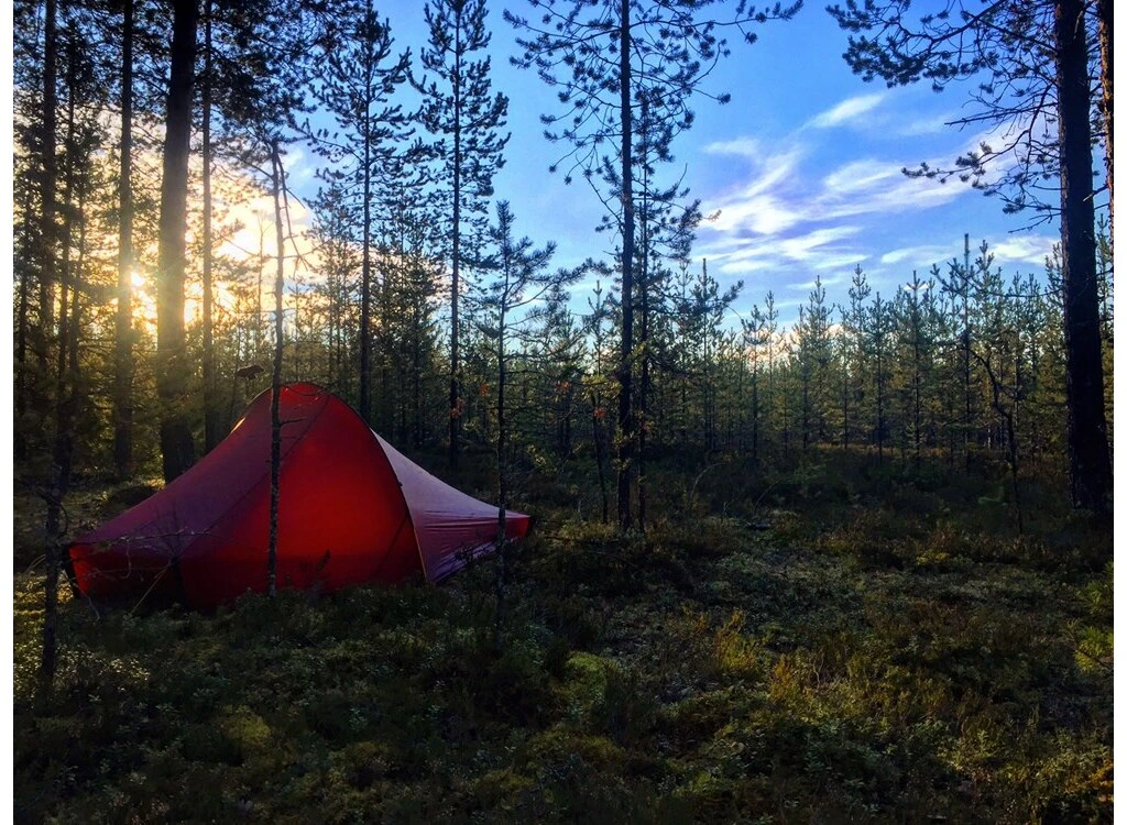 The Nordisk telemark 1lw at it’s longest point is 235cm long and 140cm at it’s wides point. So the footprint is tiny on this tent, and finding a good place to pitch is never an issue. The inner is 98cm at it’s widest and 220cm from head to toe. However it does slope hard on the feet, so expect your feet to touch the inner if you are over 180cm tall