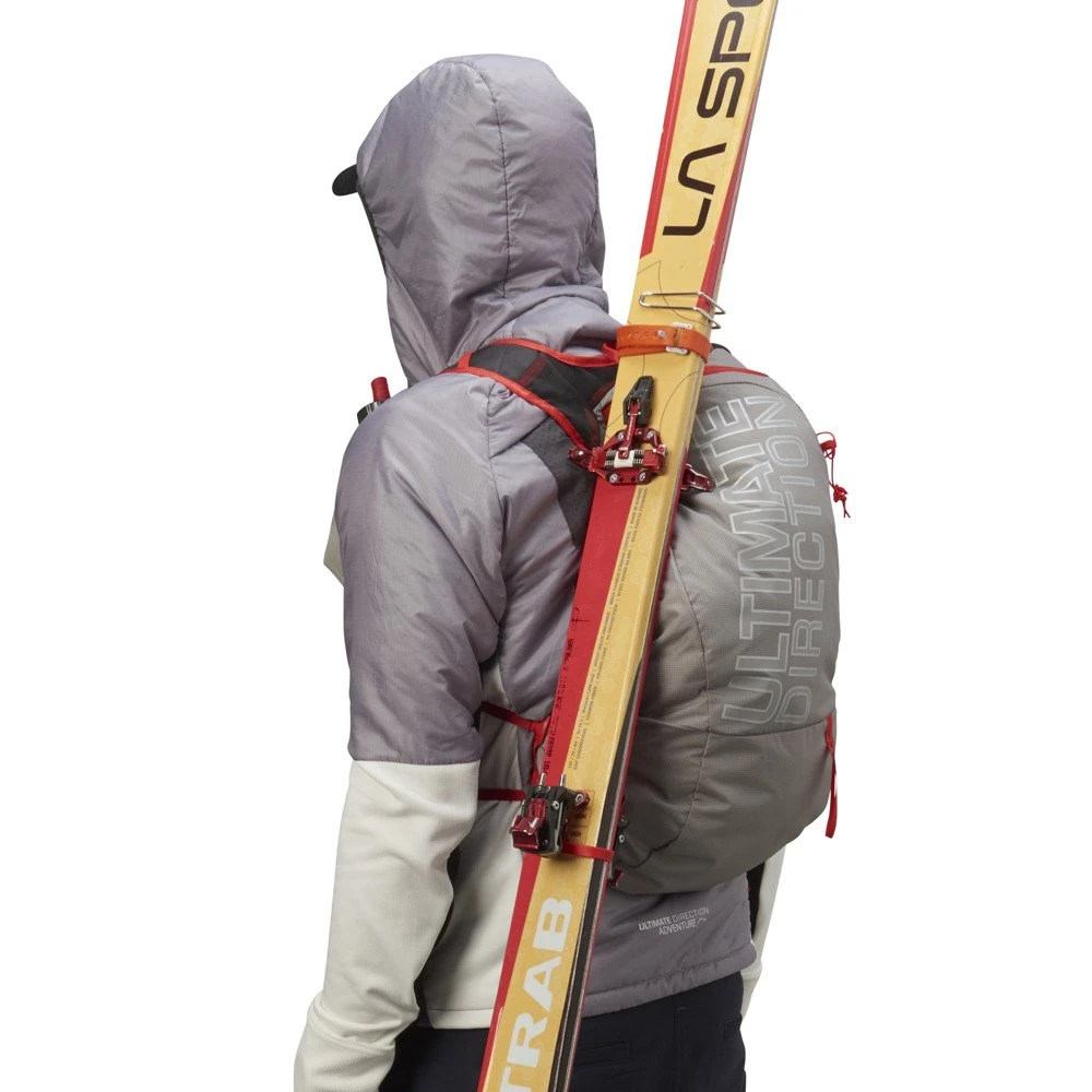 The Skimo 20 is a one-size-fits-all adjustable vest with top-end features that are quick and easy to use. Take a few laps at the resort before work, or disappear into the backcountry after the work week; either way, you have food and hydration accessible in the front, room for extra layers in the rear, and an easy way to attach skis to the vest when bootpacking. The Skimo 20 will carry gear super comfortably with great weight distribution.